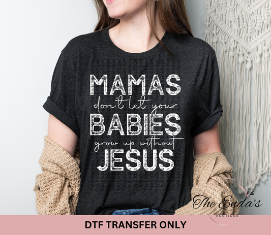 Mamas Don't Let Your Babies Grow Up Without Jesus DTF Transfer **COMES IN WHITE OR BLACK INK**