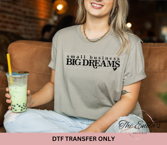 Small Business Big Dreams DTF Transfer **COMES IN WHITE OR BLACK INK**