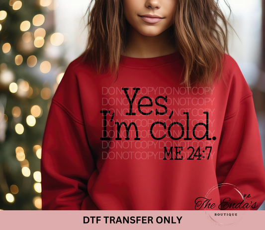 Yes, I'm Cold. Me 24:7 DTF Transfer **AVAILABLE IN BLACK AND WHITE**
