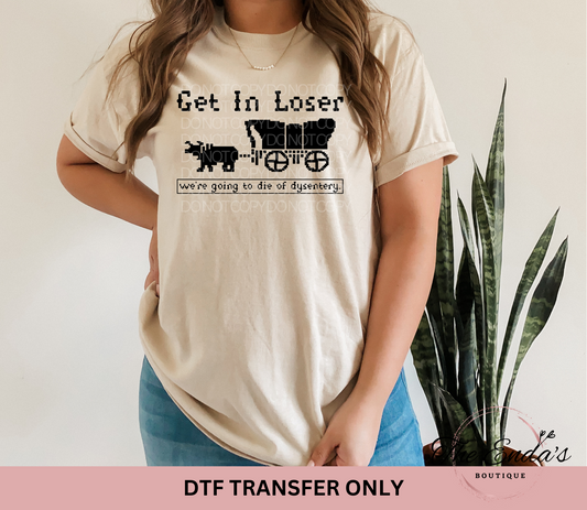 Get In Loser We're Going To Die Of Dysentery DTF Transfer **AVAILABLE IN BLACK AND WHITE**