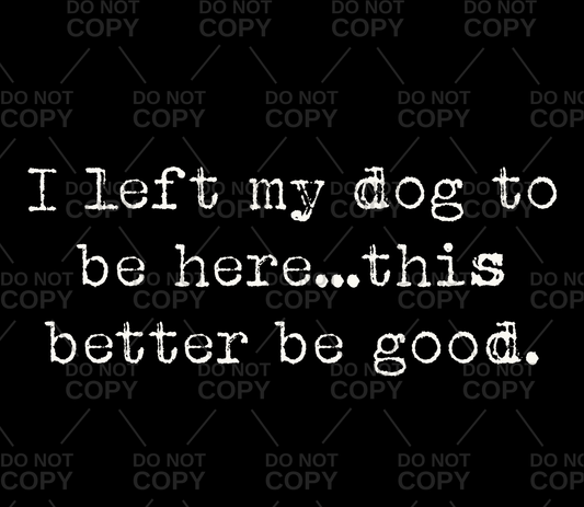I Left My Dog To Be Here...This Better Be Good DTF Transfer