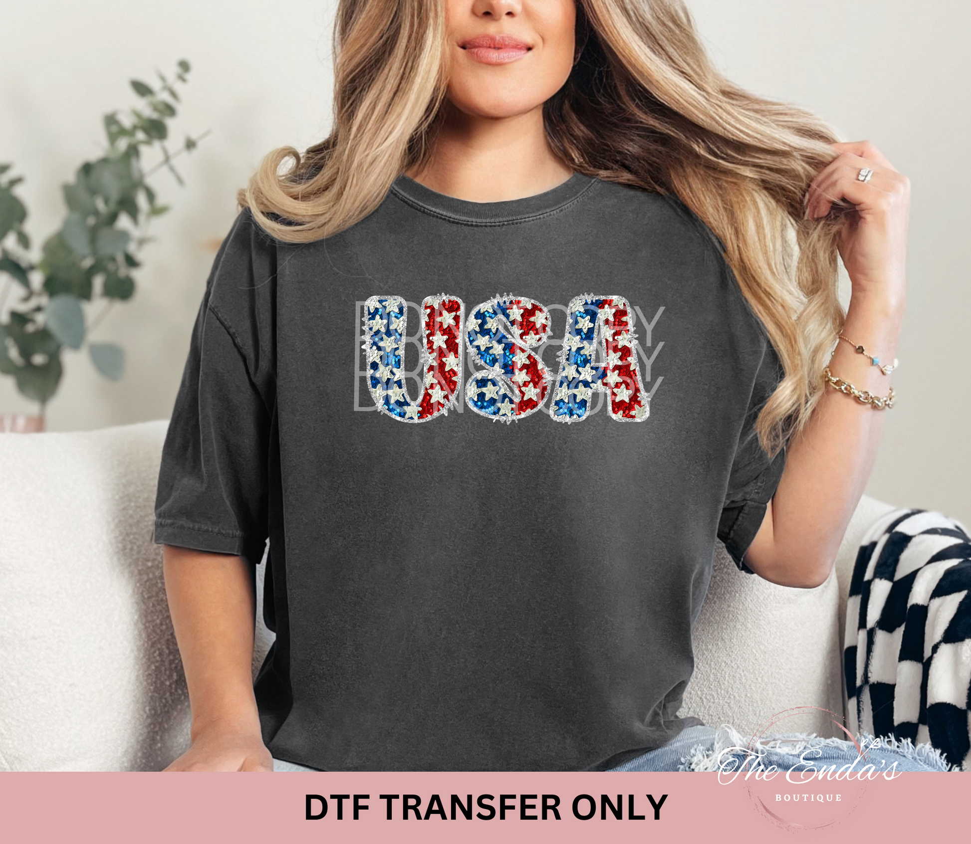Sparkly USA Faux Sequin DTF Transfer