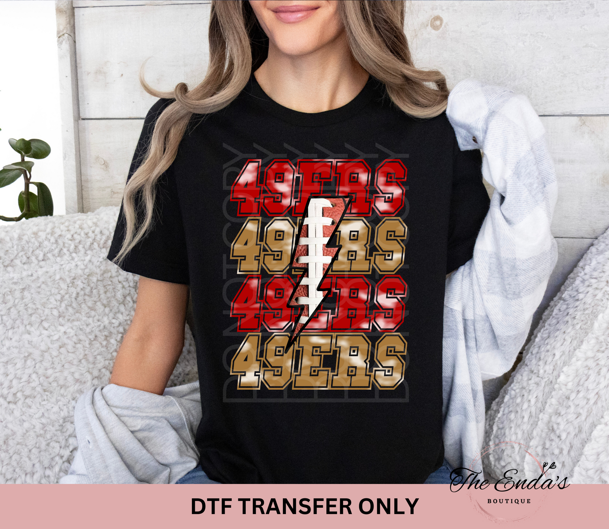 Stacked 49ers Football Lightening Bolt DTF Transfer